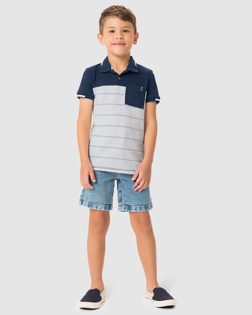 Camisa Polo Menino Estampa Listrada E Bolso Funcional Em Algodão - Carinhoso