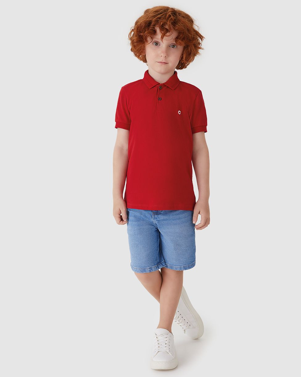 Camisa Polo Menino Manga Curta Bordado Peitoral Piquet Stretch - Carinhoso Vermelho - 1