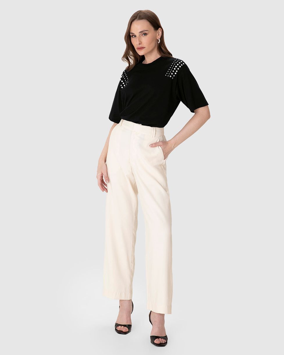 Camiseta Ampla Feminina Aplicação Ombro Rebite Strass Em Algodão - ENFIM
