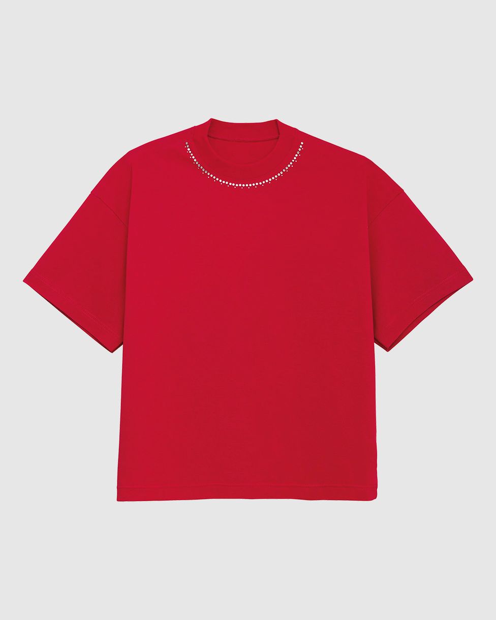 A Camiseta Enfim é a peça chave para um visual moderno e cheio de personalidade. Feita em malha de algodão, ela oferece um toque super macio e um caimento amplo e despojado. O grande diferencial é o aplique termocolante de strass na gola, que adiciona um brilho glamouroso e sutil, perfeito para destacar seu estilo em qualquer ocasião.