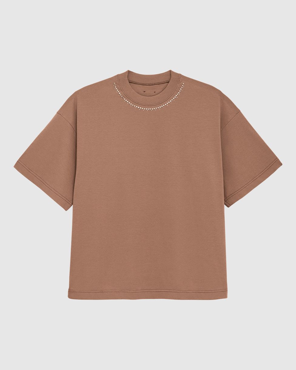 A Camiseta Enfim é a peça chave para um visual moderno e cheio de personalidade. Feita em malha de algodão, ela oferece um toque super macio e um caimento amplo e despojado. O grande diferencial é o aplique termocolante de strass na gola, que adiciona um brilho glamouroso e sutil, perfeito para destacar seu estilo em qualquer ocasião.