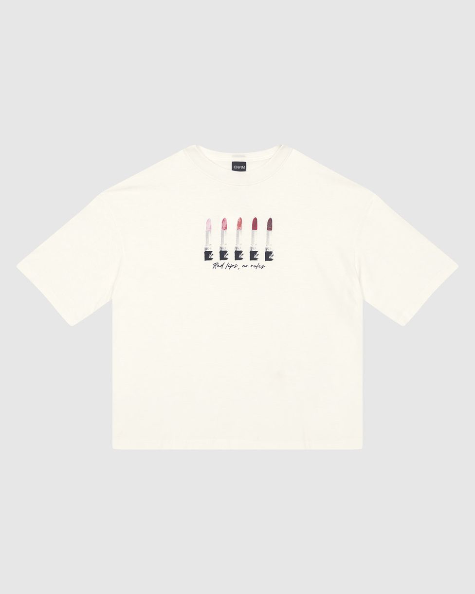 A Camiseta Ampla Feminina Red Lips da Enfim é a escolha ideal para um visual urbano e cheio de personalidade. Com modelagem oversized e estampa Red Lips, No Rules, ela é confeccionada em malha de algodão, proporcionando conforto extremo e um caimento despojado para o seu dia.