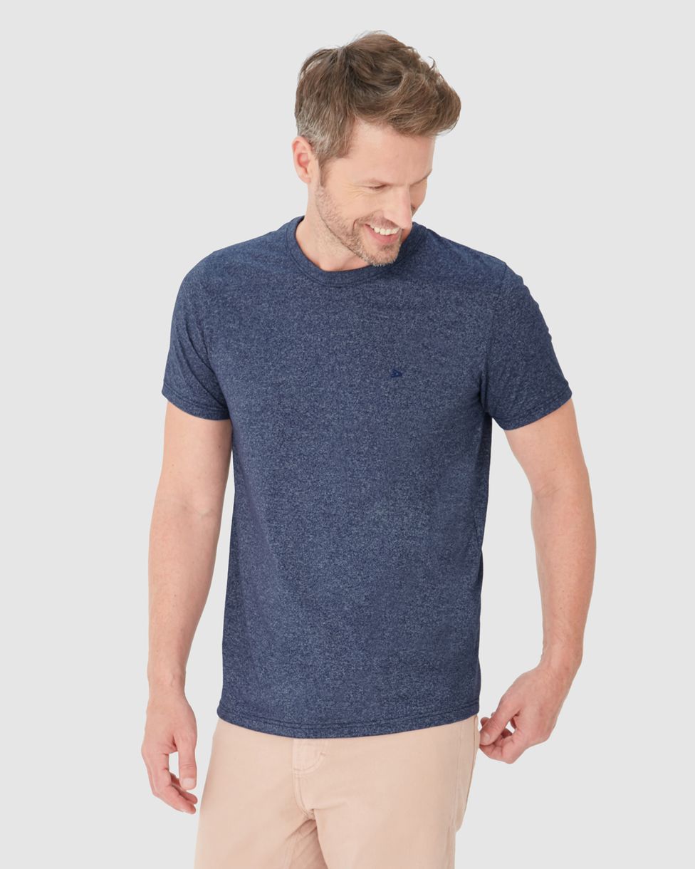 Camiseta Básica Masculina Bordada Em Malha Rajada