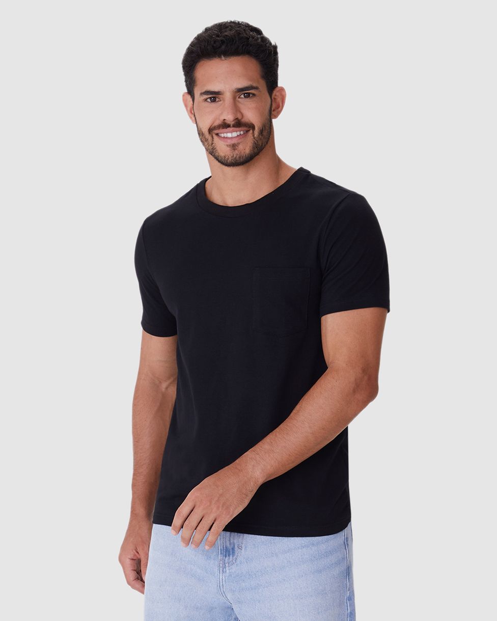 Camiseta Básica Masculina Detalhe Bolso Frontal Em Malha Linho