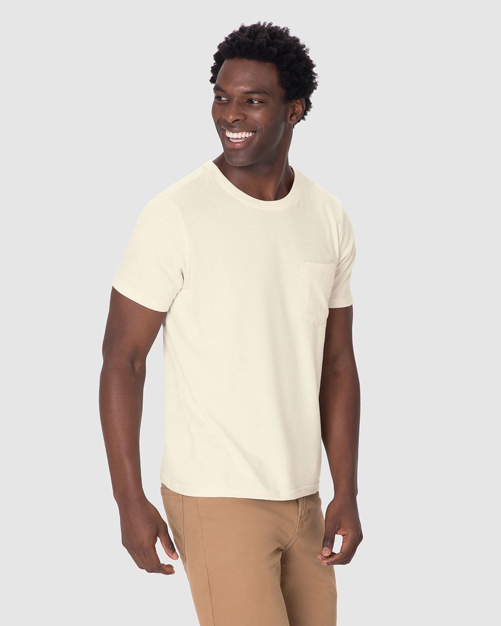 Camiseta Básica Masculina Detalhe Bolso Frontal Em Malha Linho
