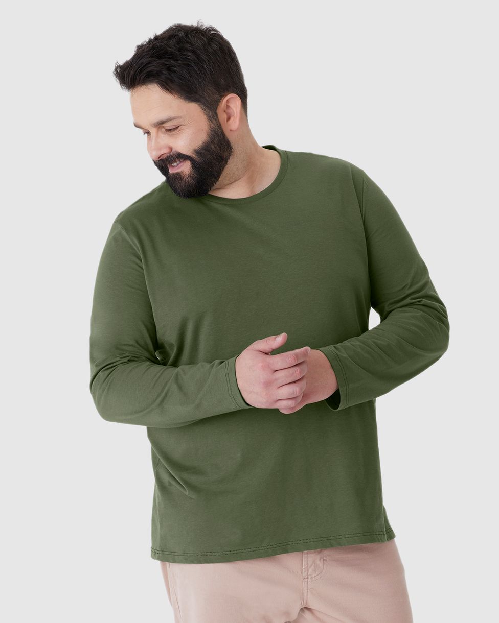 Camiseta Básica Masculina Plus Size Manga Longa Em Algodão
