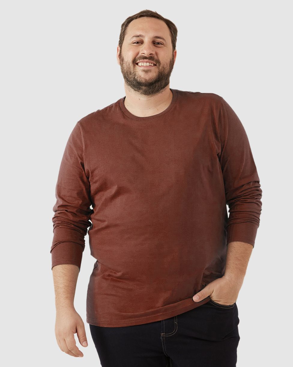 Camiseta Básica Masculina Plus Size Manga Longa Em Algodão