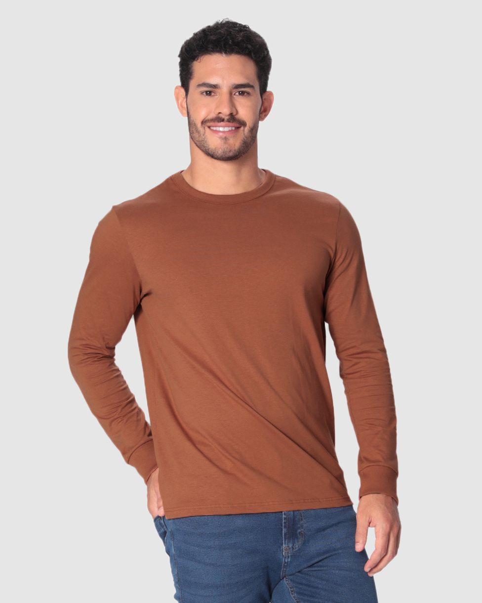 Camiseta Básica Masculina Punho Aplicado Em Algodão Marrom - XGG