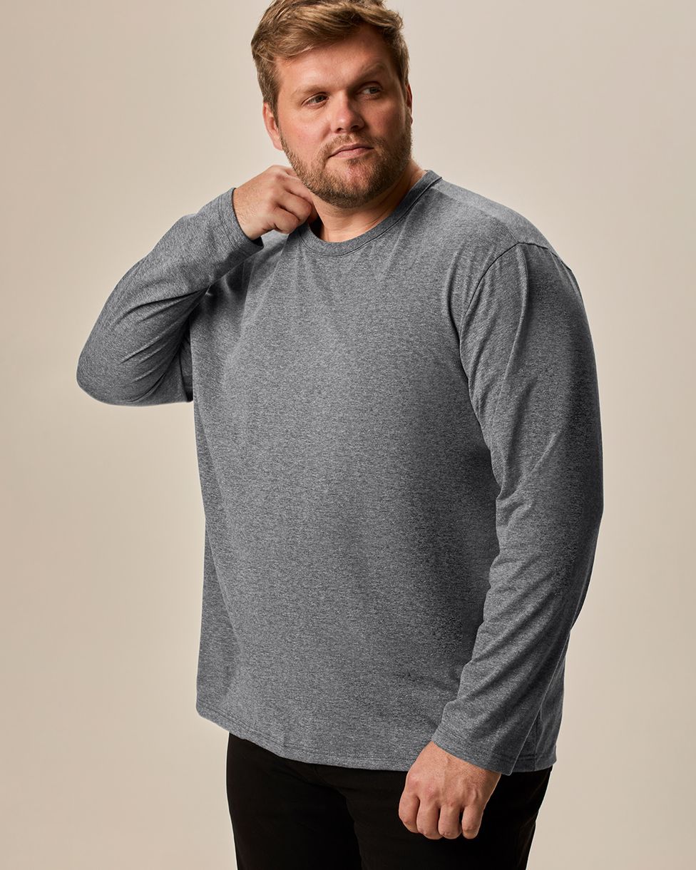 Camiseta Básica Masculina Plus Size Manga Longa Em Algodão