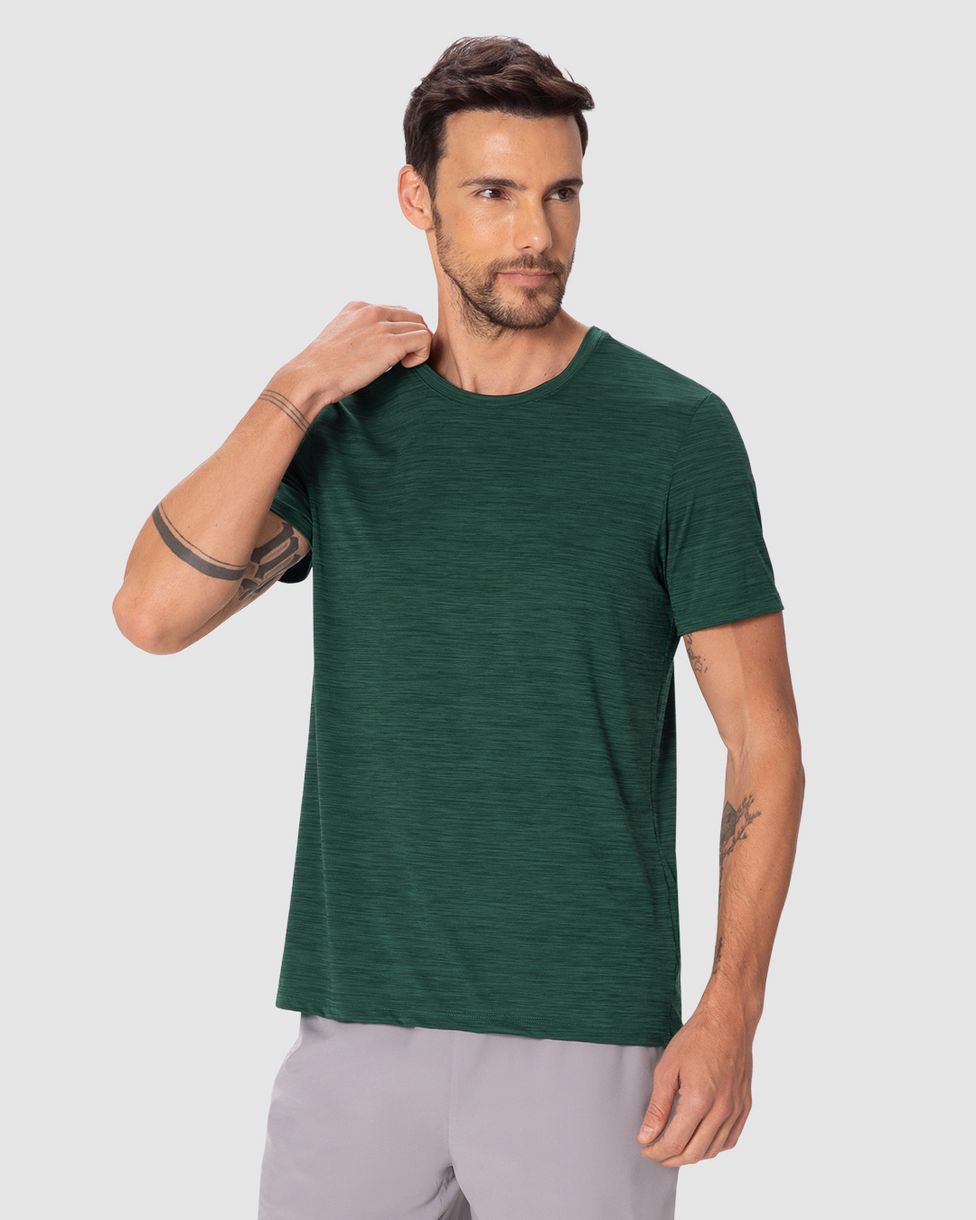 Camiseta Esportiva Masculina Com Passante Para Fone De Ouvido Malha Rajada Dry Malwee Active Verde - XGG