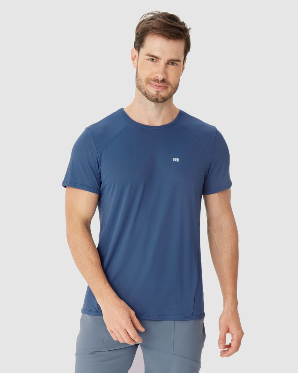 Camiseta Esportiva Masculina Slim Manga Curta Em Malha Dry E Proteção UV50+ Malwee Active Azul - M