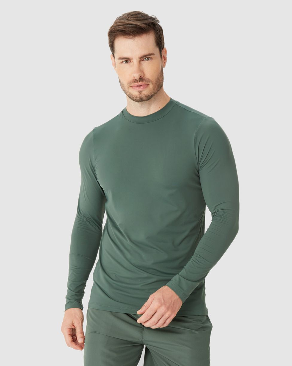 Camiseta Esportiva Masculina Slim Manga Longa Em Malha Dry E Proteção UV50+ Malwee Active Verde - G