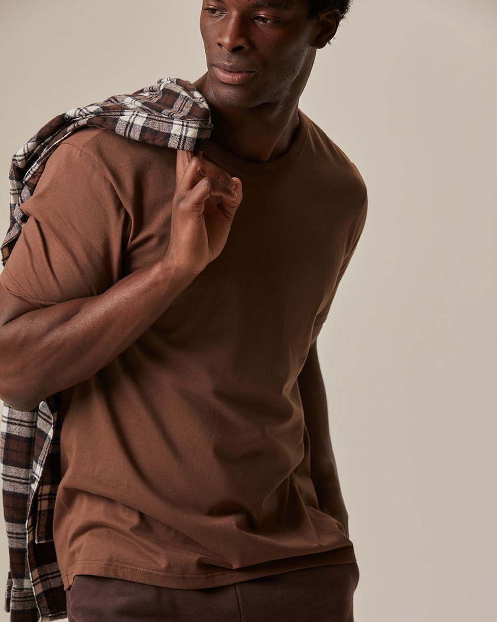 Camiseta Essencial Masculina Etiqueta Estampada Em Algodão Marrom - XGG