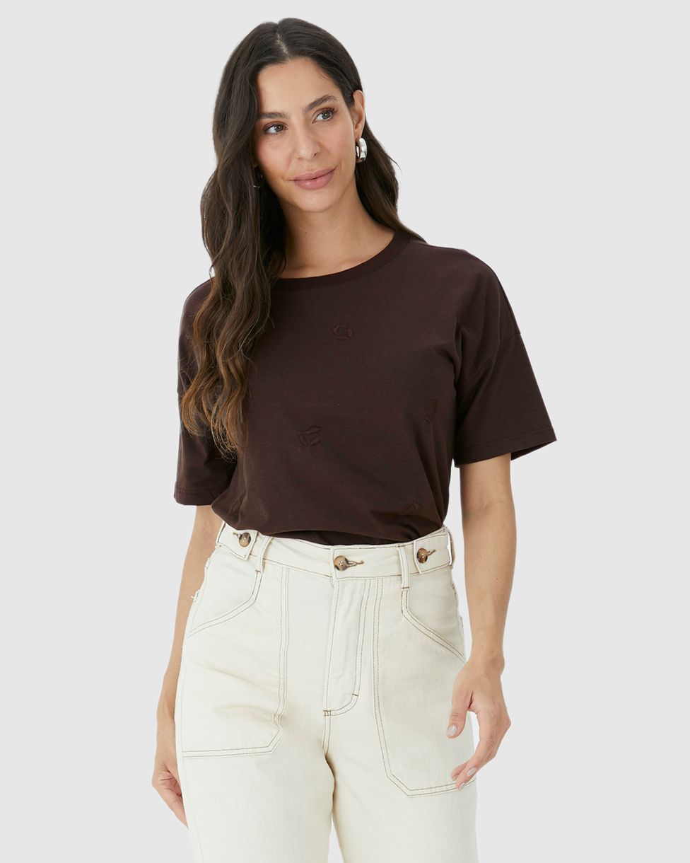 Camiseta Feminina Ampla Bordado Frontal Em Algodão