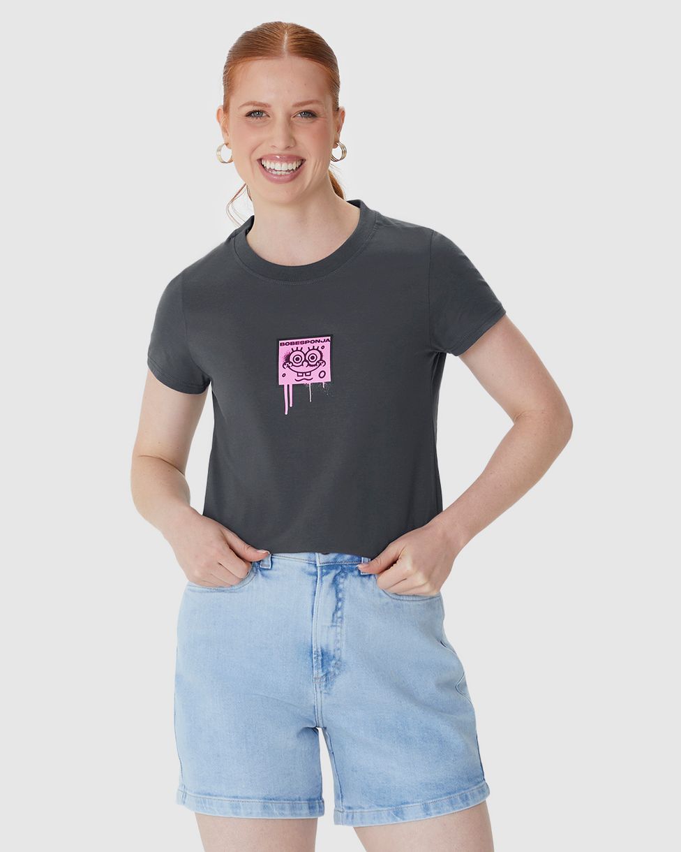 Camiseta Feminina Baby Look Estampa Bob Esponja Em Algodão
