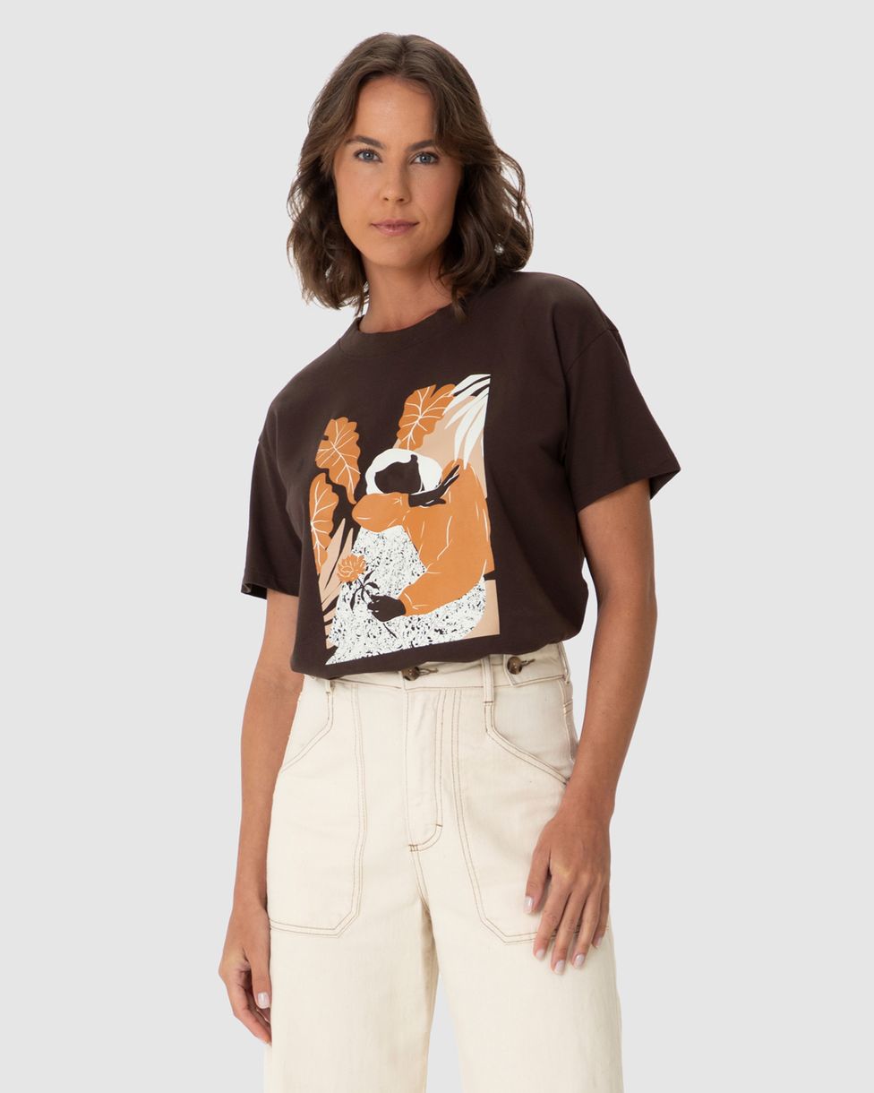 Camiseta Feminina Com Ilustração Em Algodão