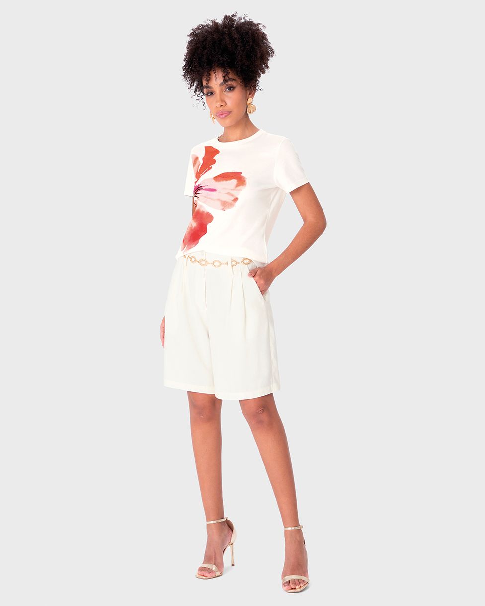Camiseta Feminina Estampa Foil Floral Em Algodão - ENFIM Off White - PP