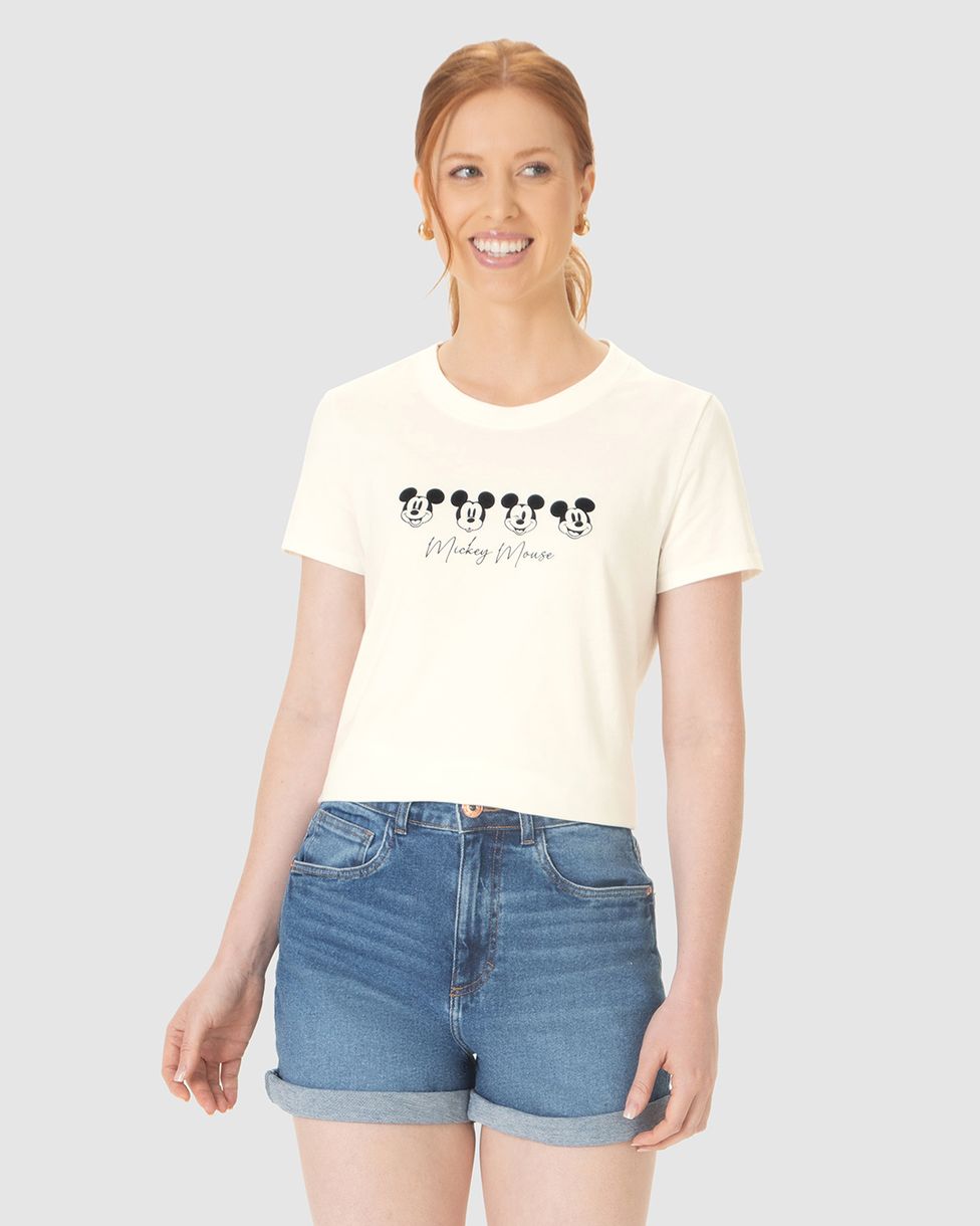 Camiseta Feminina Estampa Frontal Mickey Mouse Em Algodão