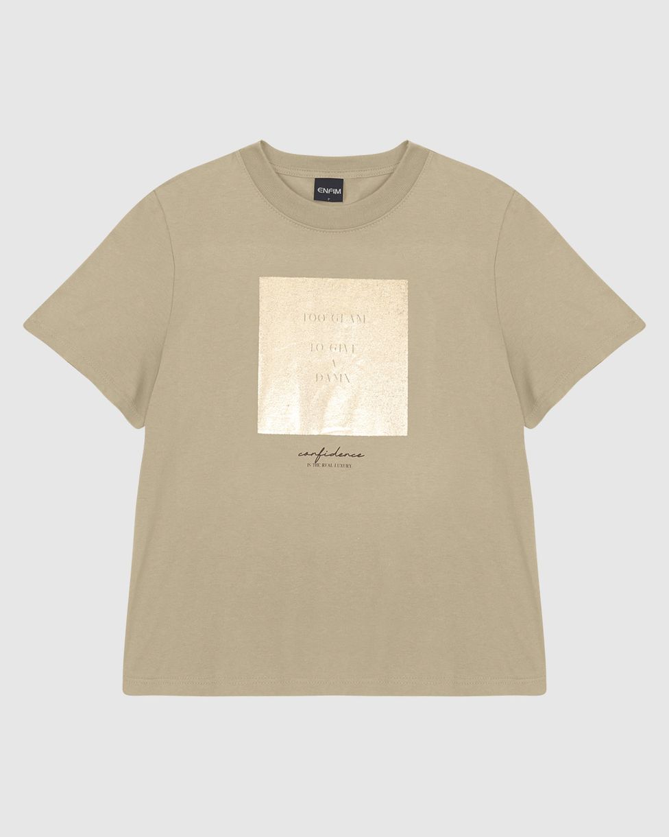Camiseta Feminina Estampa Metalizada Too Glam To Give A Dama Em Algodão - ENFIM