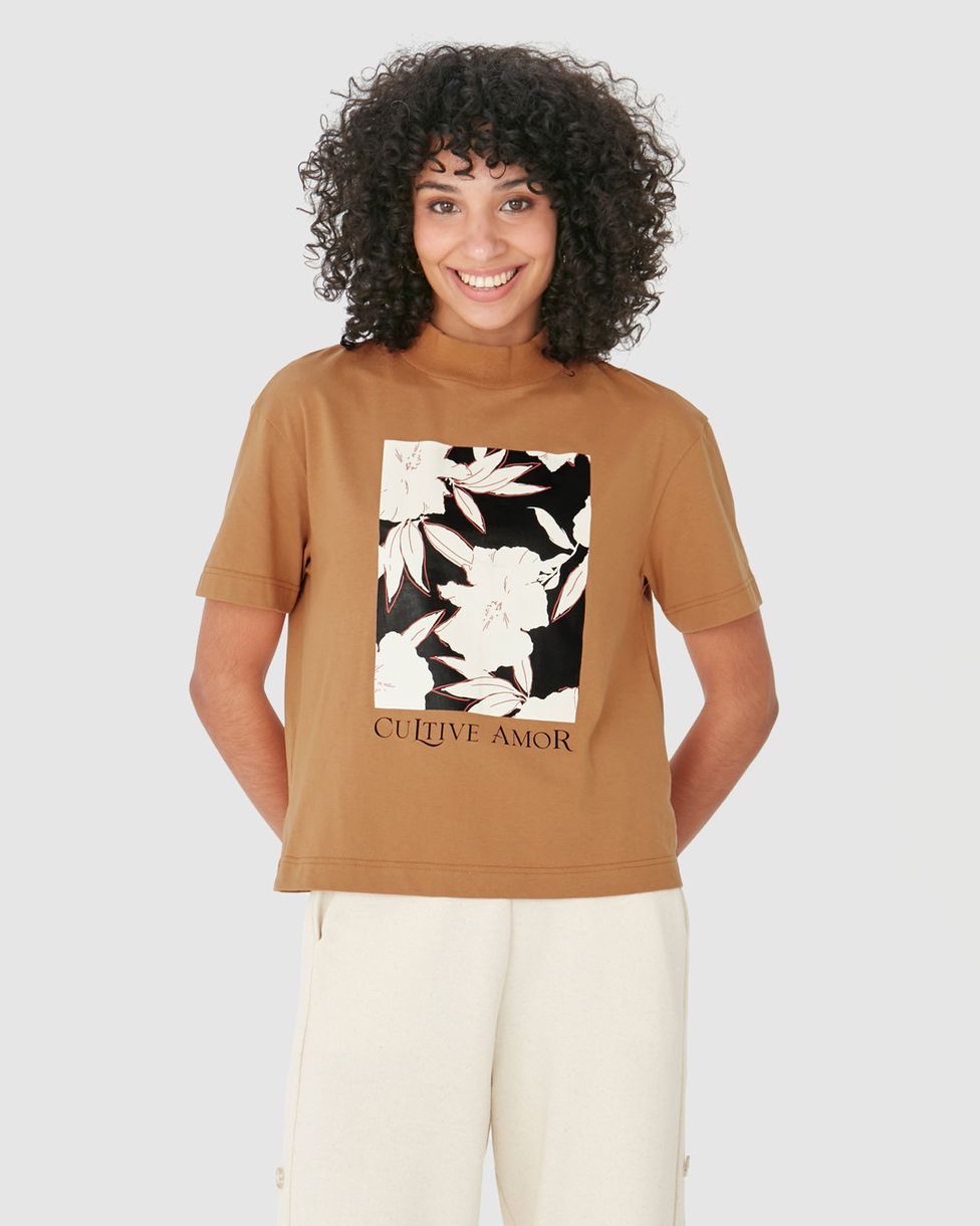 Camiseta Feminina Gola Alta Cultive Amor Em Algodão