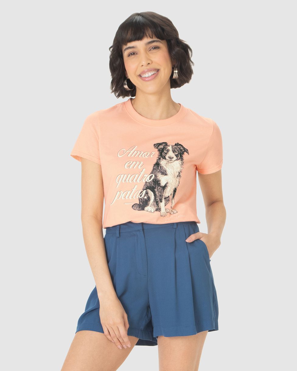 Camiseta Feminina Manga Curta Amor Em Quatro Patas Em Algodão