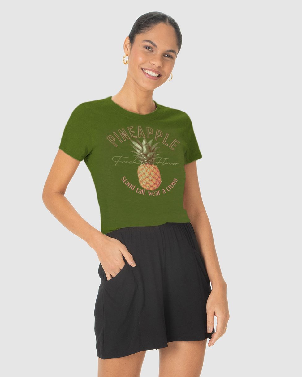 Camiseta Feminina Pineapple Fresh Flavor Stand Tall Wear a Crown Em Algodão