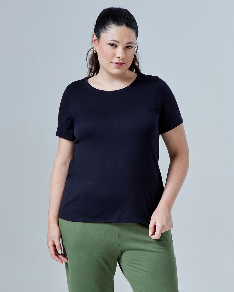 • Apresentando modelagem tradicional, feita em algodão premium 30/1, com gola redonda, mangas curtas e aberturas laterais na barra. A tecnologia Air é aplicada no tecido e tem como finalidade proporcionar sensação de frescor e bem-estar, aumentando as propriedades de transporte de umidade e rápida evaporação. Esse beneficiamento tem durabilidade de até 30 lavagens.