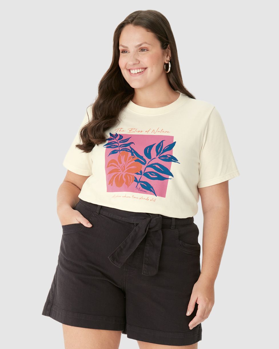 Camiseta Feminina Plus Size Ampla The Bliss Of Nature Em Algodão