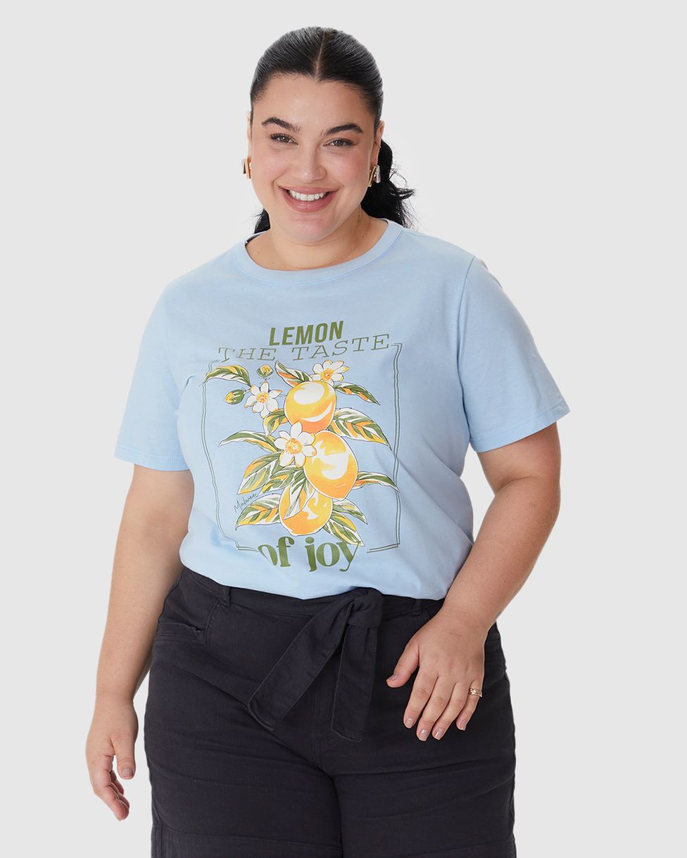 Camiseta Feminina Plus Size Estampa Lemon The Taste Of Joy Em Algodão