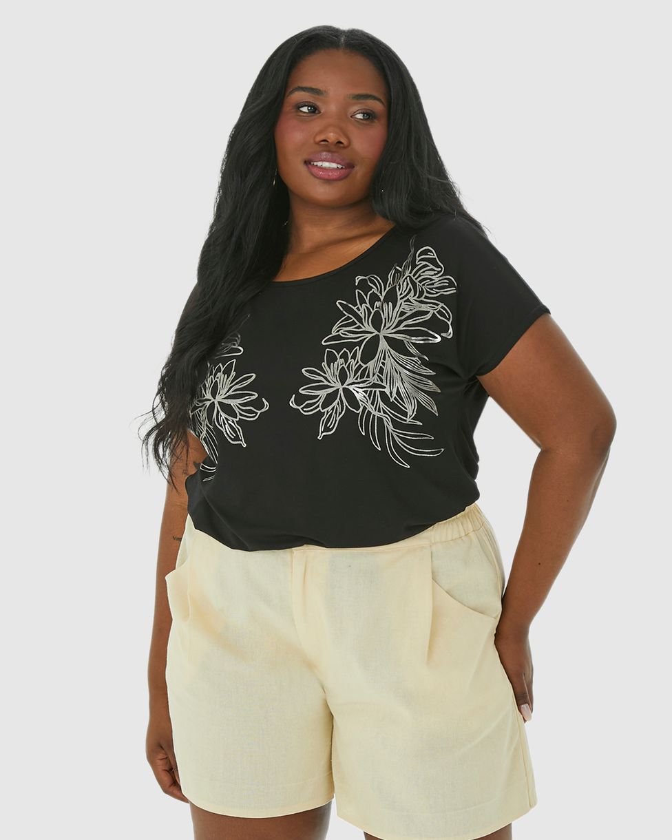 Camiseta Feminina Plus Size Estampa Metalizada Em Viscose Stretch