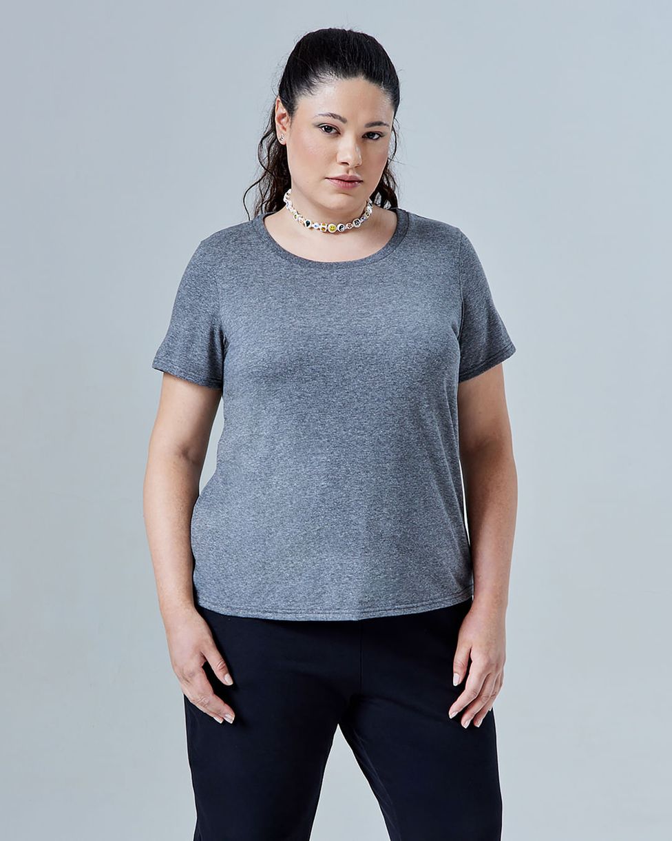 Camiseta Feminina Plus Size Gola Redonda Tecnológica Anti Odor - BASICAMENTE