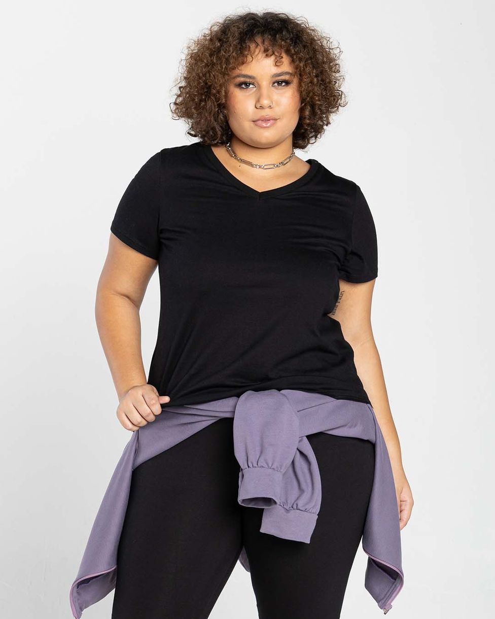 Camiseta Feminina Plus Size Gola V Tecnológica Impermeável - BASICAMENTE