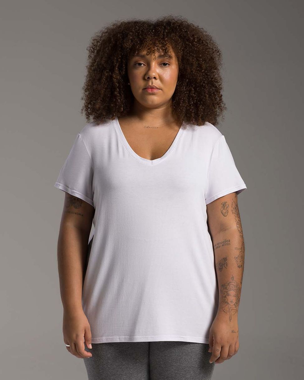 Camiseta Feminina Plus Size Gola V Tecnológica Modal - BASICAMENTE