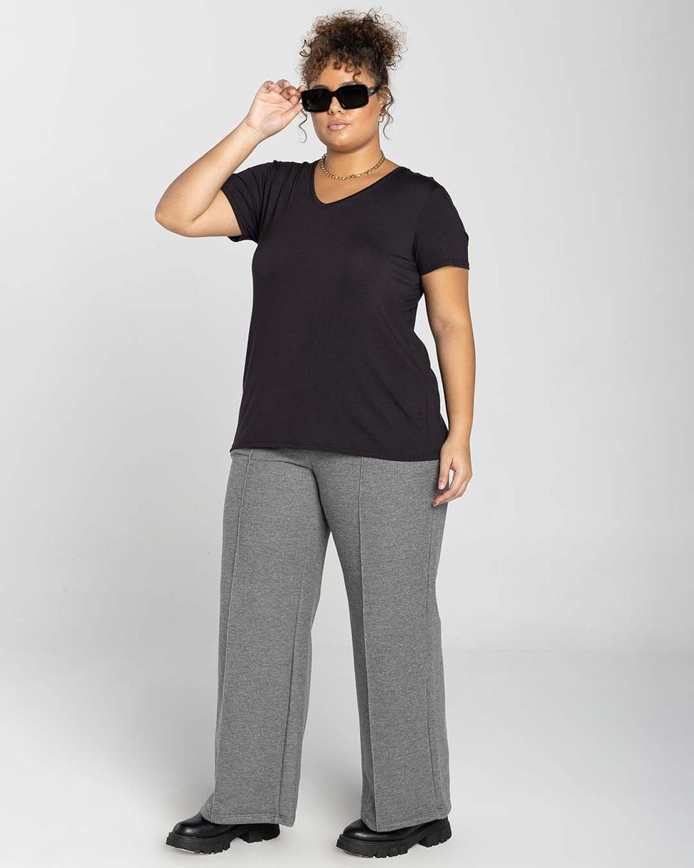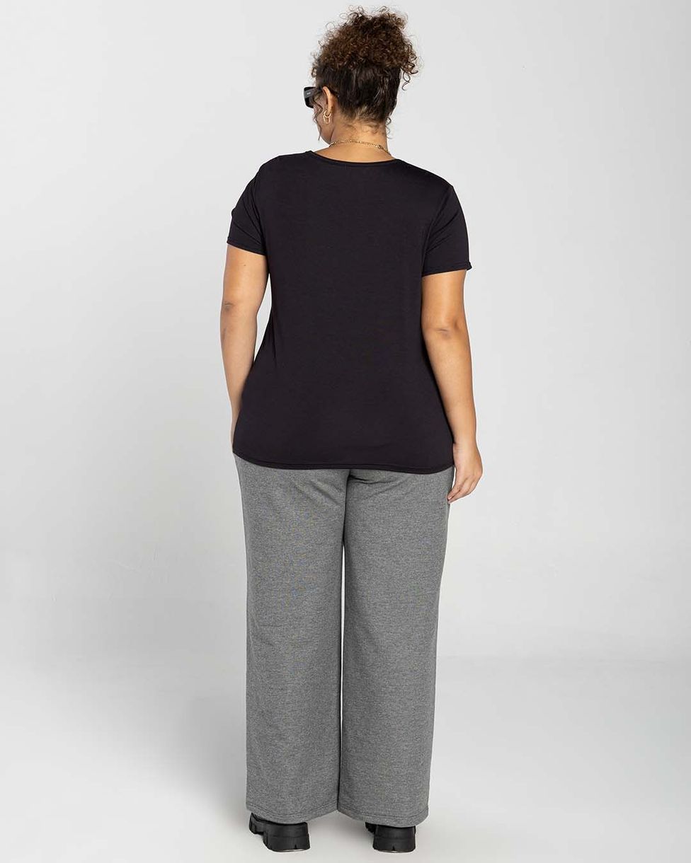 Camiseta Feminina Plus Size Gola V Tecnológica Modal - BASICAMENTE