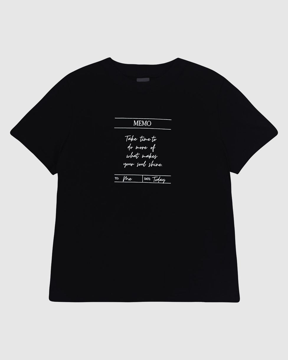 • Estampa frontal "Take Time To Do More Of What Makes Your Soul Shin: Tire um tempo para fazer mais do que faz sua alma brilhar"