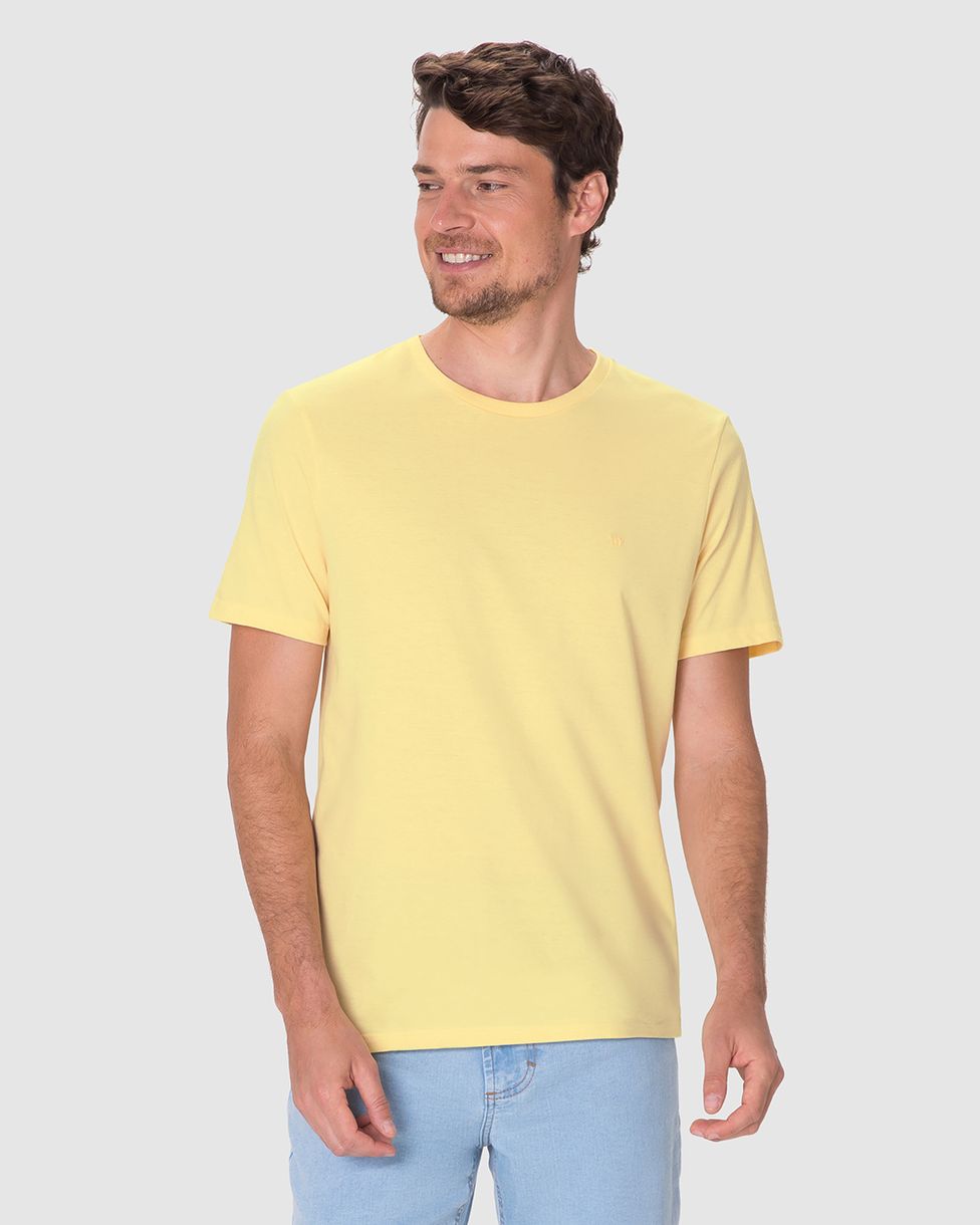 Camiseta Ícone Masculina Bordado Frontal Em Algodão Amarelo - G