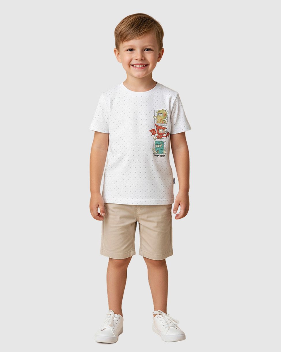 A Camiseta Infantil Menino Estampa Modo Dino da Malwee Kids é a escolha ideal para os meninos aventureiros! Feita em Malha Botonê macia e com uma estampa divertida de dinossauros, oferece conforto e um toque de estilo em cada brincadeira.