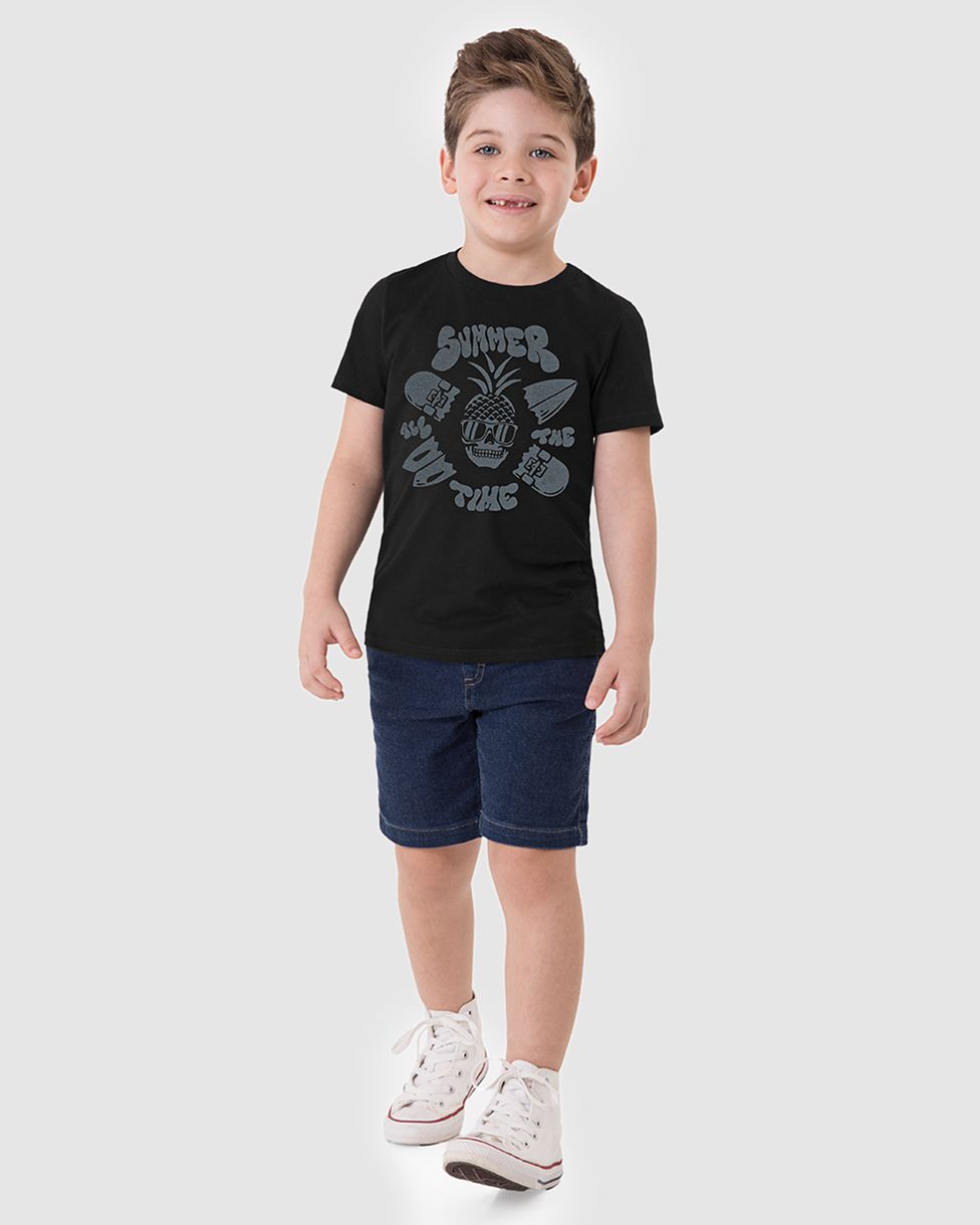 Camiseta Infantil Menino Gola Redonda Estampa Frontal Em Algodão Malwee Kids Preto - 10