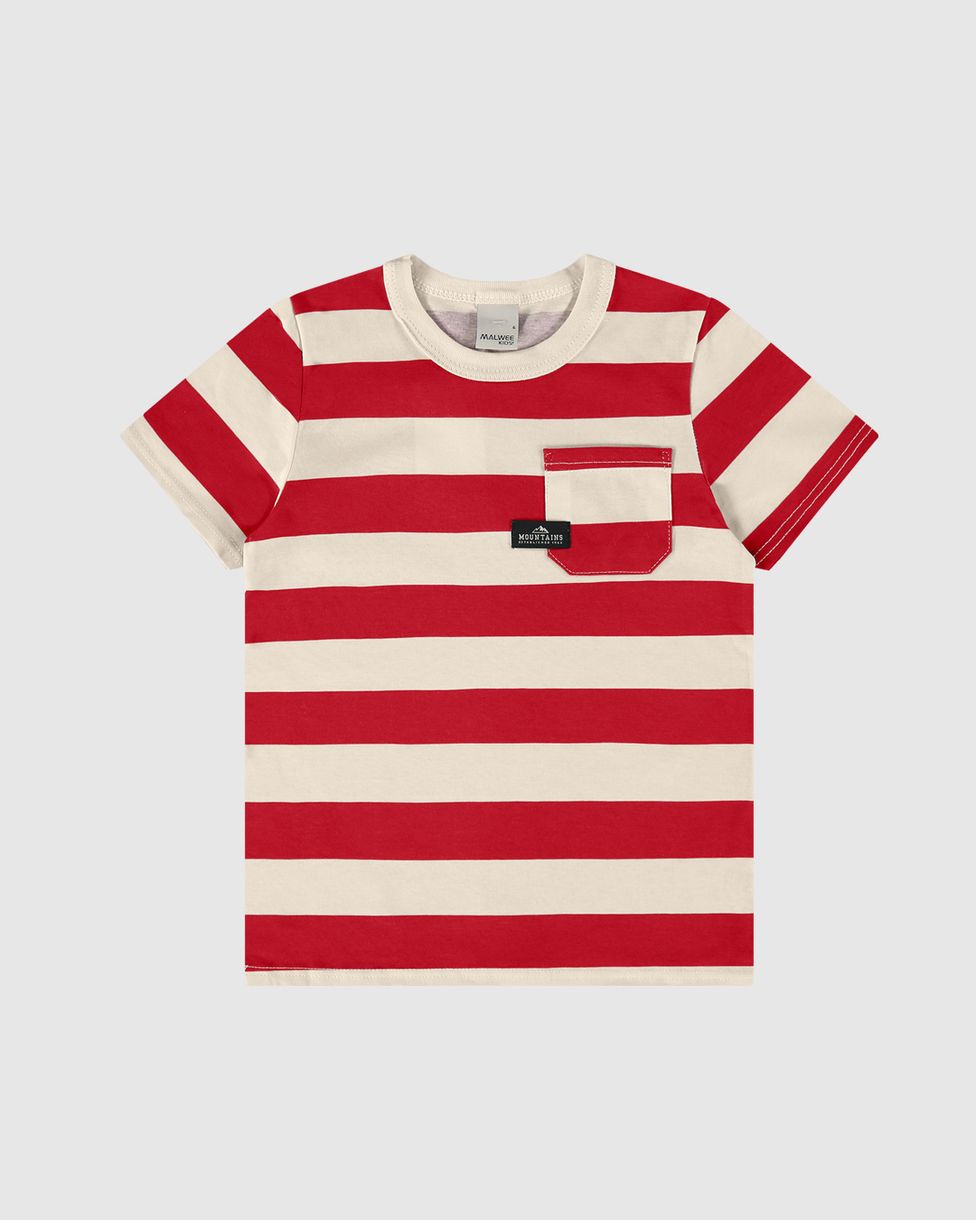Camiseta Infantil Menino Listrada Bolso Frontal Em Algodão Malwee Kids