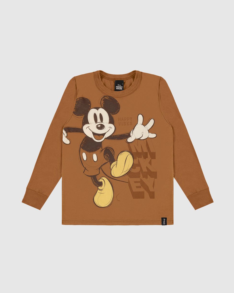 Camiseta Infantil Menino Manga Longa Mickey Disney Em Algodão Malwee Kids