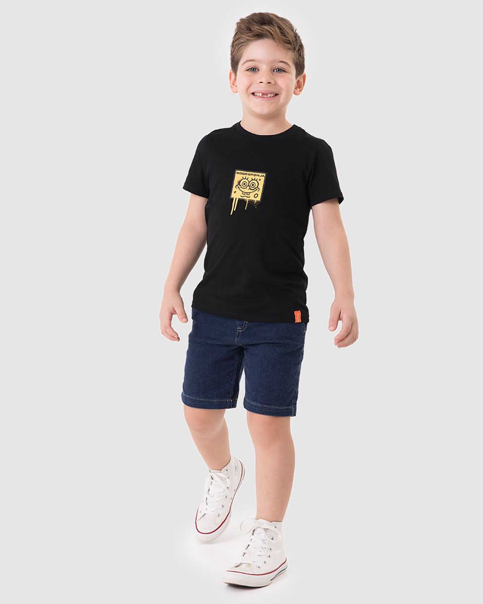 Camiseta Infantil Menino Rad! Bob Esponja Estampa Frente E Costas Malwee Kids Preto - 10