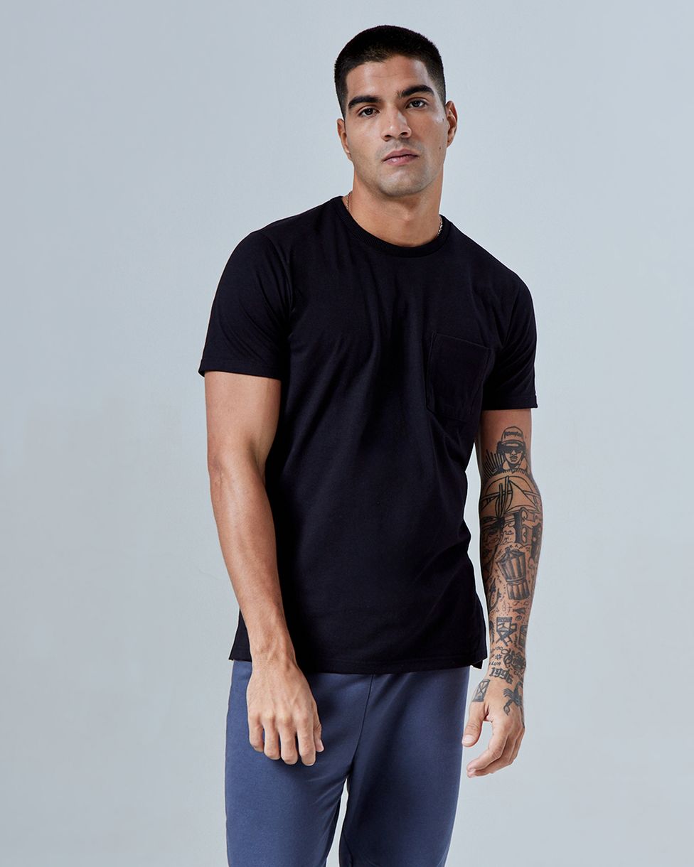 • Confeccionada com 50% algodão, que proporciona um toque super macio e leve, e 50% poliéster, que oferece uma sensação refrescante e maior respirabilidade, ela combina o melhor dos dois materiais. A tecnologia Air de regulagem térmica ajusta a temperatura do corpo em até 3ºC, assegurando conforto em qualquer ambiente. Com um bolso frontal que agrega estilo e funcionalidade, e um shape reto que permite criar diversos looks, essa camiseta é versátil e prática para o seu dia a dia.