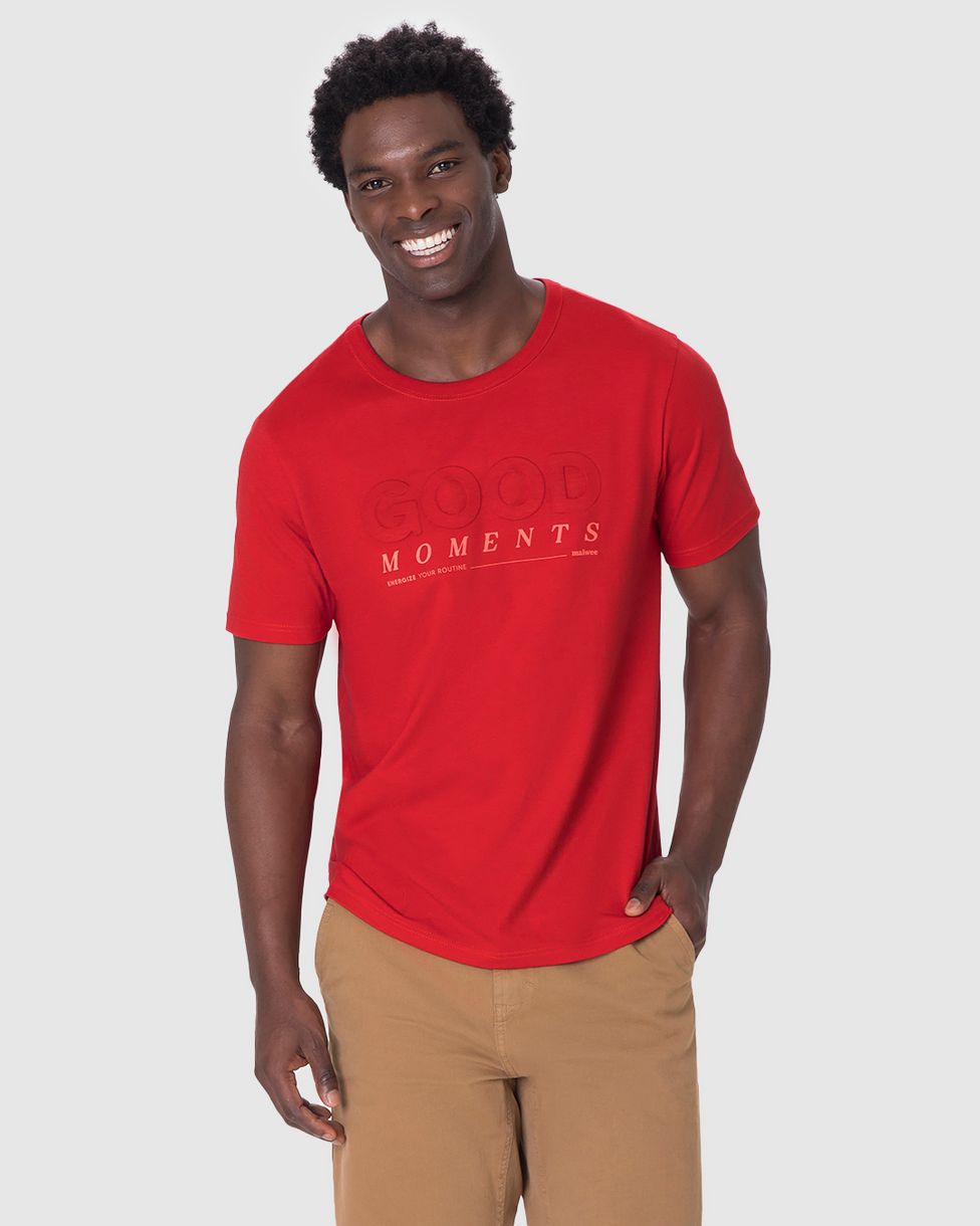 Camiseta Masculina Estampa Alto Relevo Good Moments Em Algodão Vermelho - G