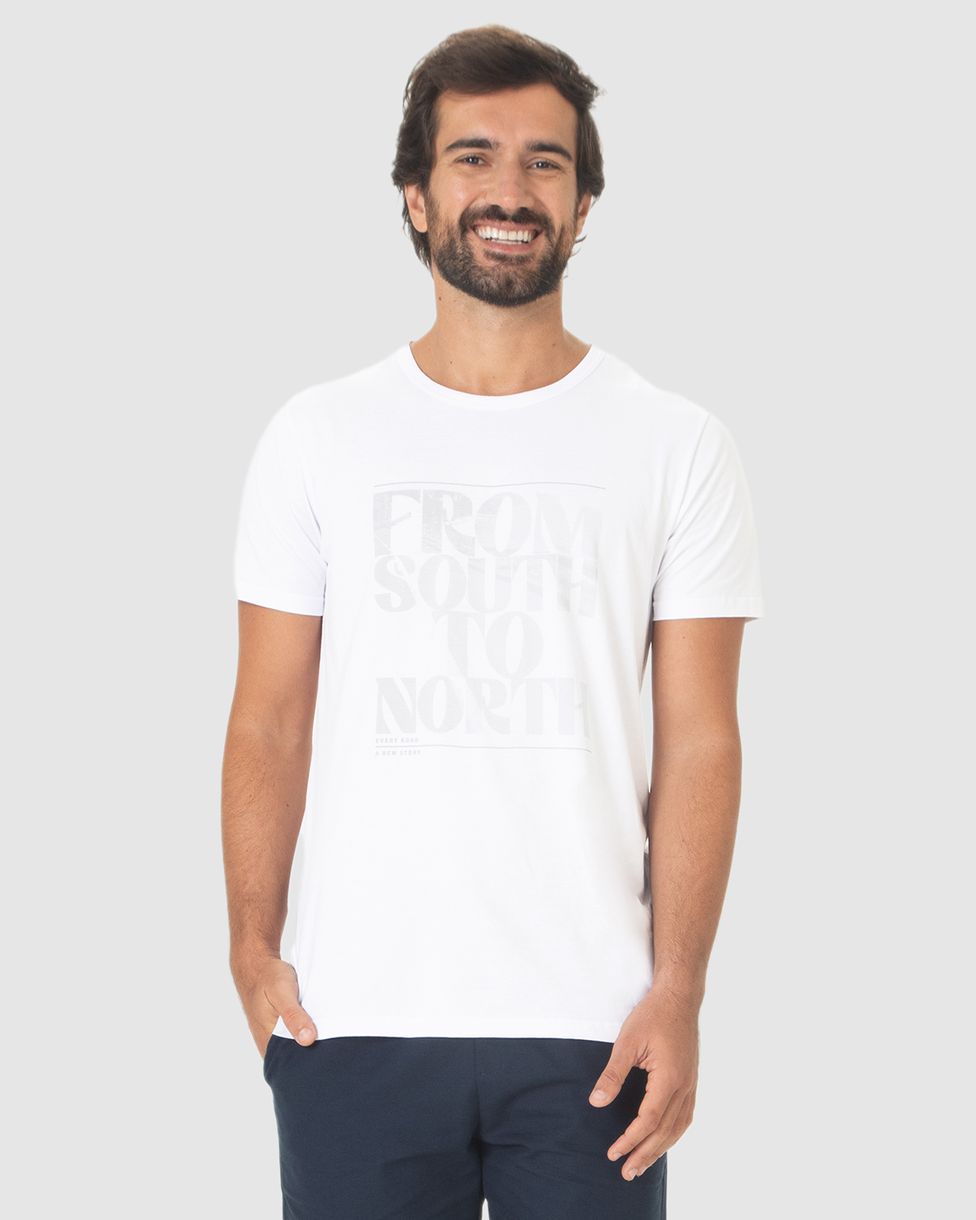 Camiseta Masculina From South To Nort Every Road A New Story Em Algodão