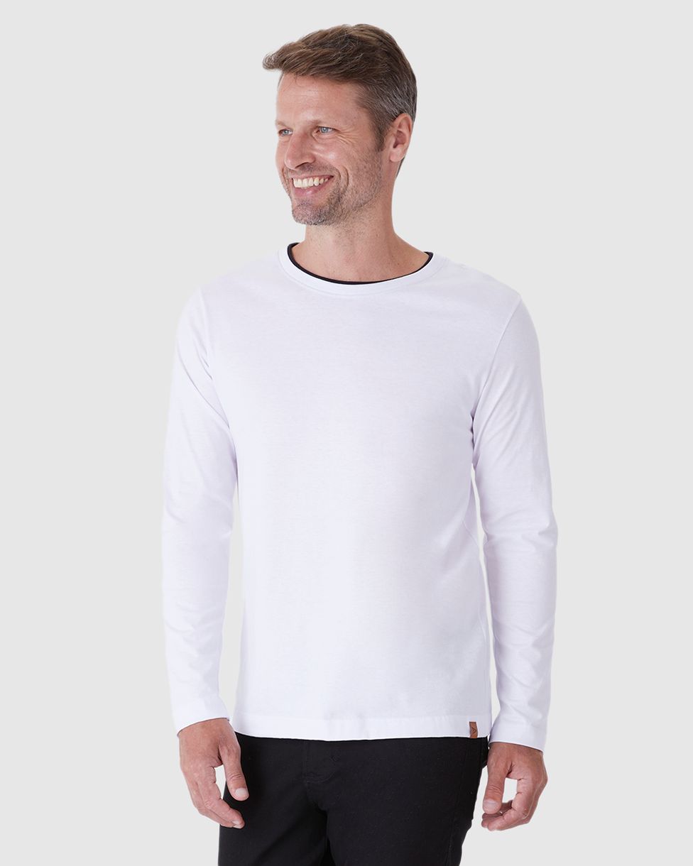 Camiseta Masculina Gola Contraste Manga Longa Em Malha Comfy Touch