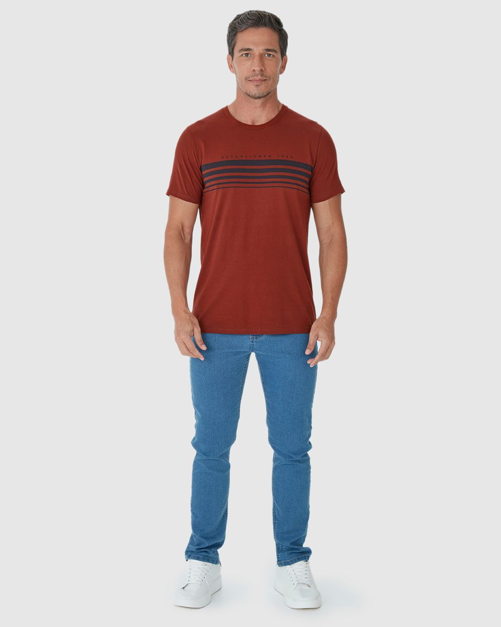 Camiseta Masculina Listras Frontais Em Algodão