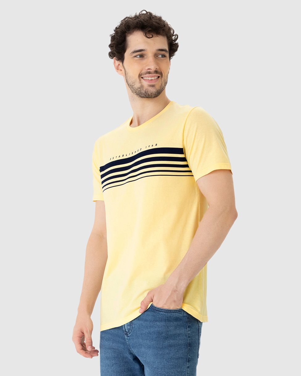 Camiseta Masculina Listras Frontais Em Algodão