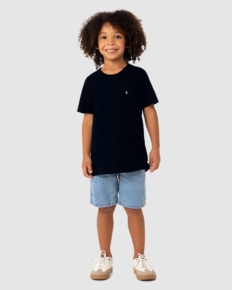 Camiseta confeccionada em algodão meia malha. Um modelo clássico para acompanhar os meninos no dia a dia. Essa peça conta com caimento tradicional, que acompanha as linhas do corpo com muito conforto. Com decote redondo, mangas curtas e detalhe frontal de bordado da marca. O modelo apresenta em seu diferencial um viés interno em tom contraste e personalizado. A meia malha é um tecido que tem bom caimento, durabilidade e proporciona leveza e frescor ao vestir. Para um visual casual, combine com bermuda em jeans, tênis slip on e boné!
