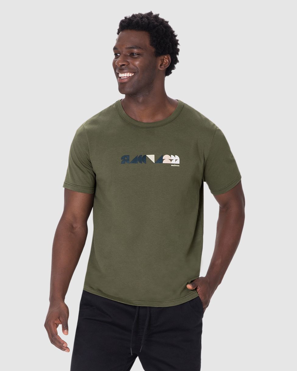 Camiseta Masculina Manga Curta Estampa Discreta Frontal Em Algodão Verde - G