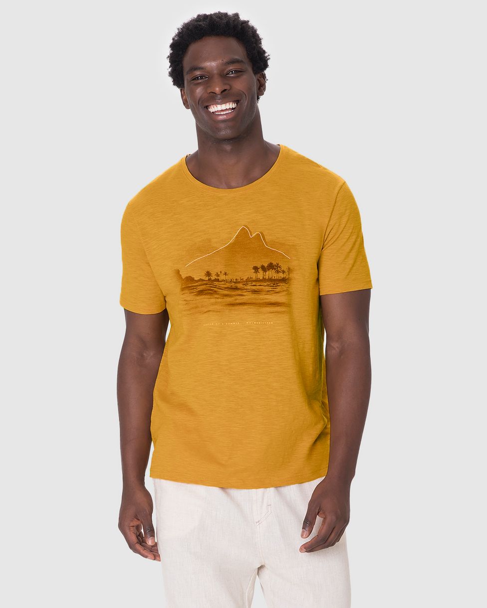 Camiseta Masculina Manga Curta Estampa Frontal Em Malha Flamê Amarelo - G